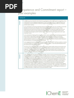 Example A Technical Report 6 of 33 3. I would suggest getting in contact with the IChemE directly. If you work in a research or academic environment summarise your published papers detailing your most recent reports going back no more than 5 years Any significant technical reports you have written or co-authored during your career which demonstrate your technical ability.